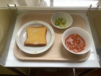 牛乳・フレンチトースト・トマトシチュー・コーンサラダ