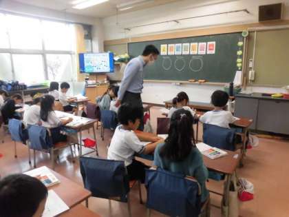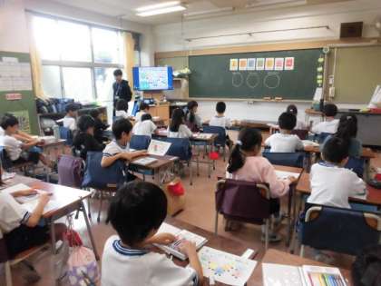 曜日の学習をしています。リズムに合わせて歌を歌ったり、曜日のイラストの色塗りをしたりしています。子どもたちはとても楽しそうです。