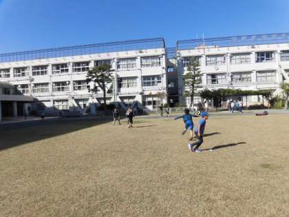 昼休みになりました。子どもたちが校庭で遊んでいます。