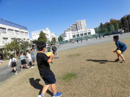 6年生はドッジボールが大好きです。体育館の横が、いつものドッジボールの場所になっています。