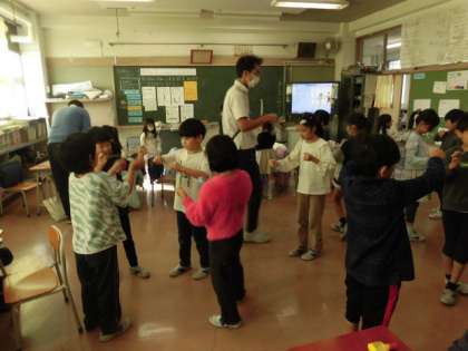 子どもたちは、とても楽しそうです。2人で回すなど工夫する人たちもいました。