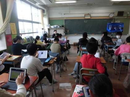 6年生の教室では、展覧会の子どもガイドに向けて、取材内容の確認をしています。