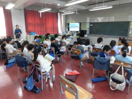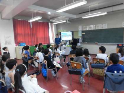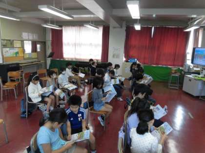 2年生の授業は音楽です。トルコ行進曲の鑑賞をしています。