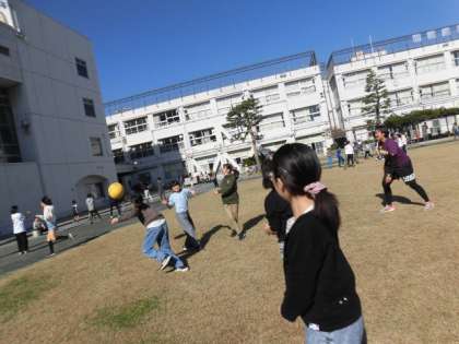 いつもバレーボールをしている5年生4年生、レシーブがとても上手になり、円陣でのボール回しが長く続くようになりました。