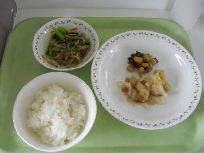 ごはん 牛乳 太刀魚の梅肉ソースかけ おひたし こんぶ豆