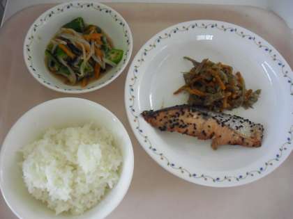 ごはん 牛乳 鮭の南部焼き おくらともやしの煮びたし きんぴらごぼう