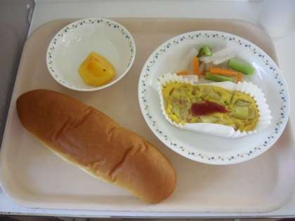 チーズパン 牛乳 スペイン風オムレツ ピクルス 柿