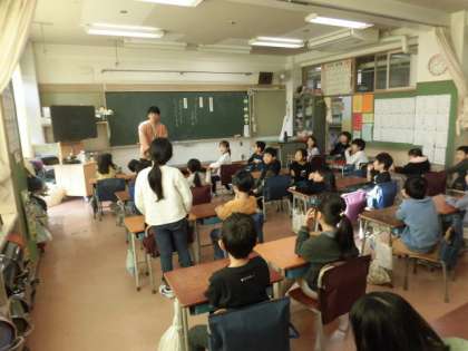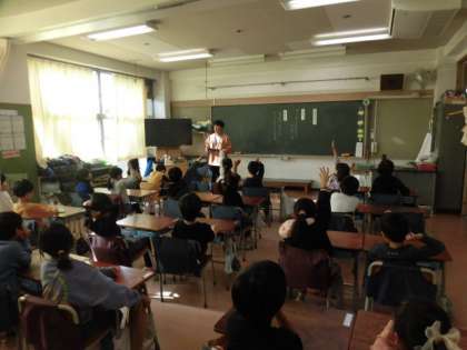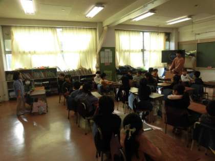 テーマに沿って、友達からの質問を交えながら話をします。聞く人たちもしっかりと聞いています。