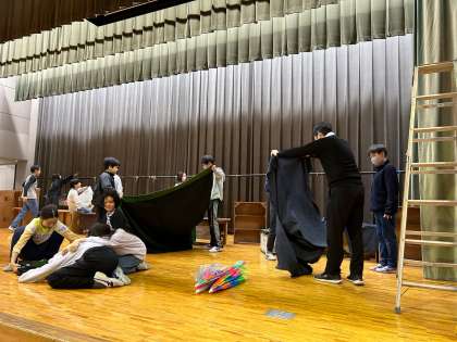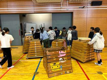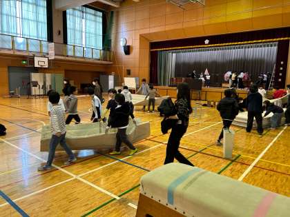 5時間目、5年生が展覧会の会場だった体育館の片付けをしてくれました。