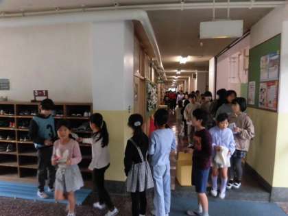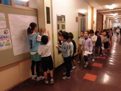校内にいる集会委員会さんを見つけて、サインをもらいます。集会委員さんのところには行列ができています。みんな楽しそうに校内を探し回っています。