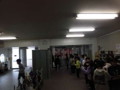 今日の朝の活動はゲーム集会です。校内スタンプラリー集会です。