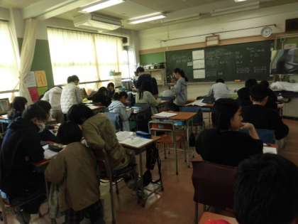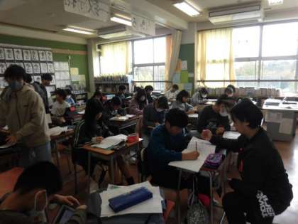 6年生の授業は算数です。2クラスとも練習問題を解いていました。一人ひとり自分で課題をもって取り組んでいる6年生です。