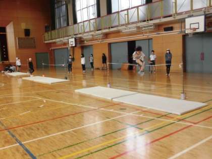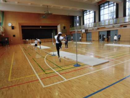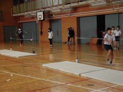 6年生の授業は体育です。高跳びをしています。