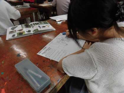 木にイラストを描き、パズルを作ります。子どもたちは、そのデザインをしています。どのようなパズルに仕上がるのでしょうか。楽しみです。