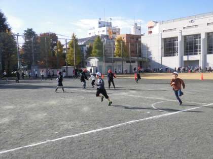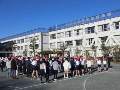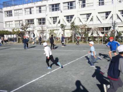今日の朝の活動は児童集会です。全校でおにごっこをします。6年生がオニです。捕まった人は、帽子を赤にしてオニになります。さすが6年生、あっという間に赤い帽子が増えていきます。朝からみんなで楽しく身体を動かしました。