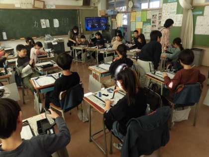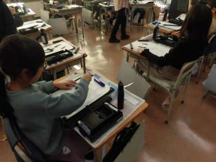 子どもたちは筆を立てて、ていねいに書いています。見ているこちらも力が入ってしまいそうです。