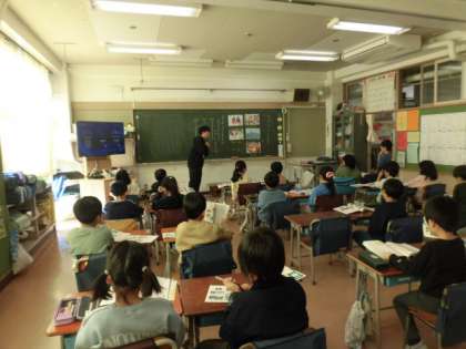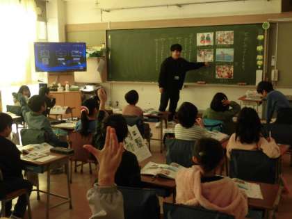 1年生の授業は道徳です。世界の子どもたちの学習です。