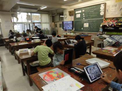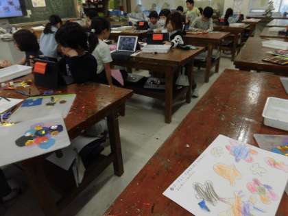 作品作りが終わった人は、お化けプリントに色塗りをしたり、タブレットで課題をすすめたりしていました。しっかりと自分の課題に取り組んでいる2年生です。