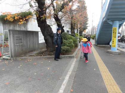 今日もおまわりさんが子どもたちを見守ってくれています。