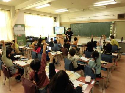 子どもたちの手のあげ方がとてもすてきです。手がまっすぐに伸びています。写真で見てもお分かりになると思います。すごいですね。