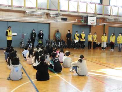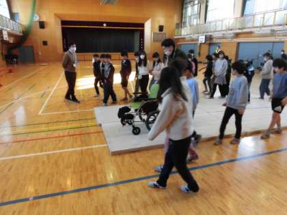 4年生は車いす体験を行いました。社会福祉協議会や地域の方々などにお手伝いをいただき、行いました。