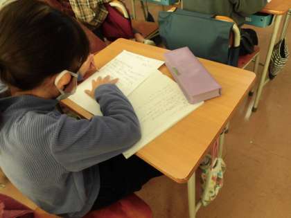 子どもたちが記入している用紙を見てみると、ていねいな字でまとめたあります。用紙で自分でまとめる力もついてきています。