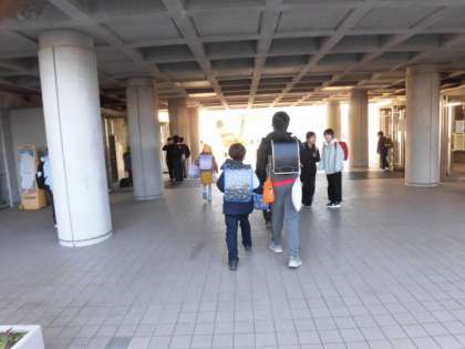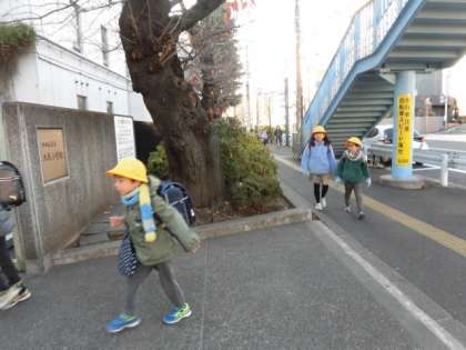 6年生が下級生と手をつないで登校しています。あたたかい気持ちになります。