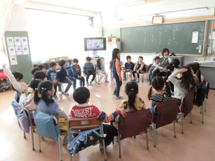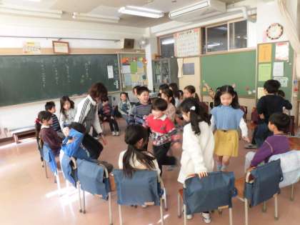 1年生の教室をのぞいてみると、お楽しみ会をやっていました。