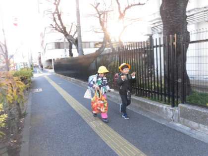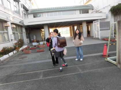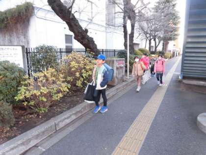 子どもたちが登校してきました。今日は日差しもありあたたかく感じます。