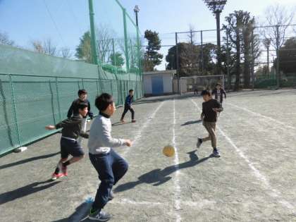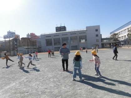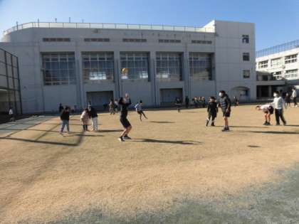 昼休みになり、子どもたちが校庭に出てきました。お日さまが出ていてとてもあたたかく感じます。子どもたちと一緒に走っていると、汗が出てきます。身体を動かすのには最高の気候です。