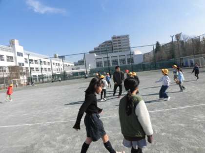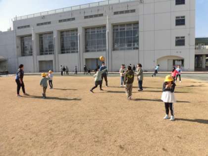 子どもたちは、元気におにごっこやドッジボールで楽しそうに遊んでいます。遊んでいる子どもたちは、みんな汗をかいています。