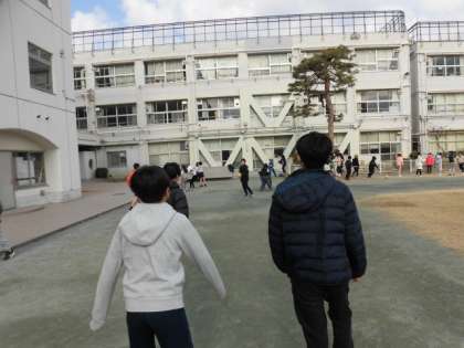 中休みになりました。今日は6年生とドッジボールをしました。6年生の投げるボールはとても速くすぐに当てられてしまいました。さすが、6年生です。