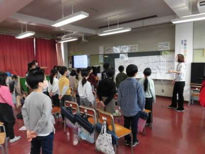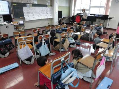 2年生の授業は音楽です。「こぐまの二月」を歌っています。
