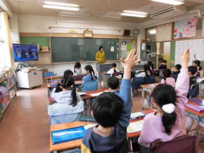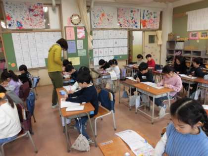 書き順やその漢字を使った言葉を確認をしています。「右」という漢字を学習していました。「左」と同じように思ってしまいがちですが、つくりや書き順など全く異なります。しっかりと覚えてほしいです。