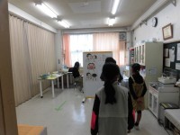 パートに分かれて楽器の演奏の練習をしています。事前に撮った動画を見ながら練習をしている人もいます。