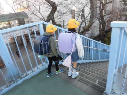 子どもたちが登校してきました。昨日と比べると少しあたたかく感じます。