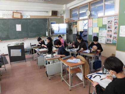 3年生の授業は書写です。毛筆の授業です。書く文字は「つり」です。
