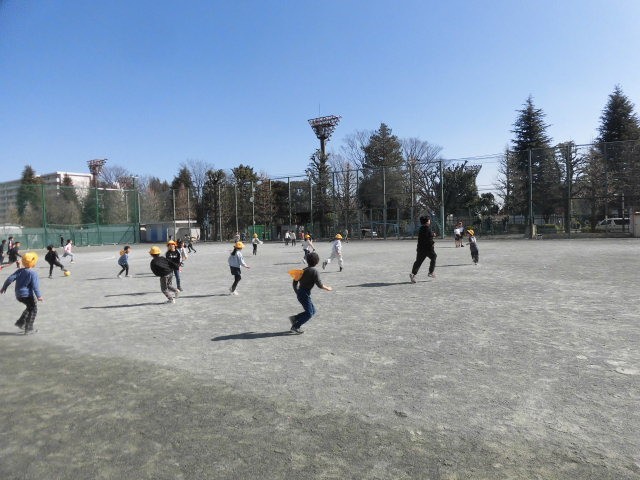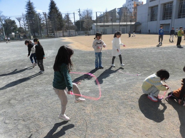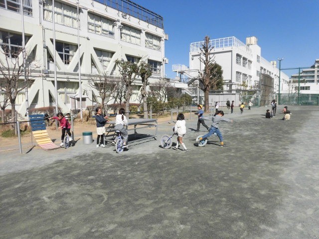 低学年の人は一輪車や縄跳び、鉄棒で遊んでいる人がたくさんいます。