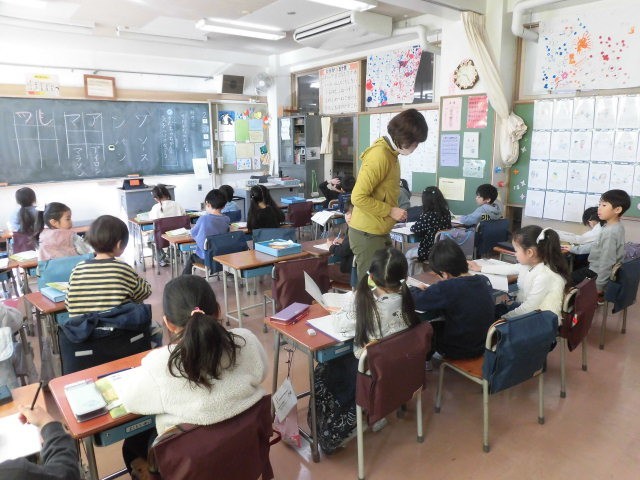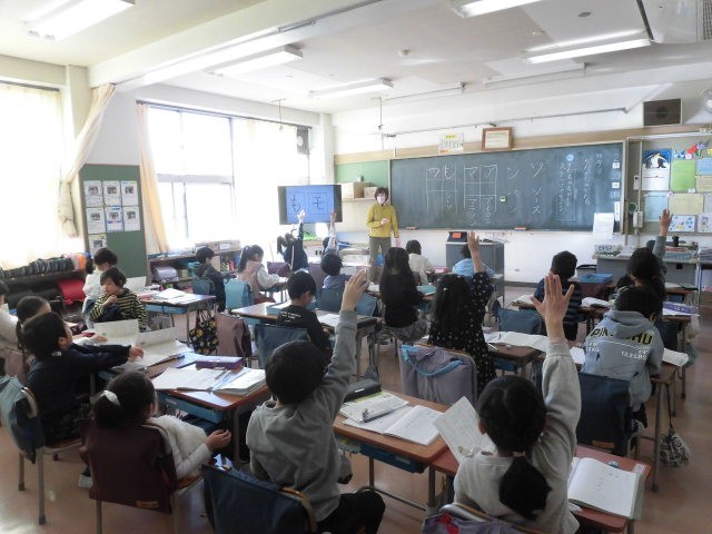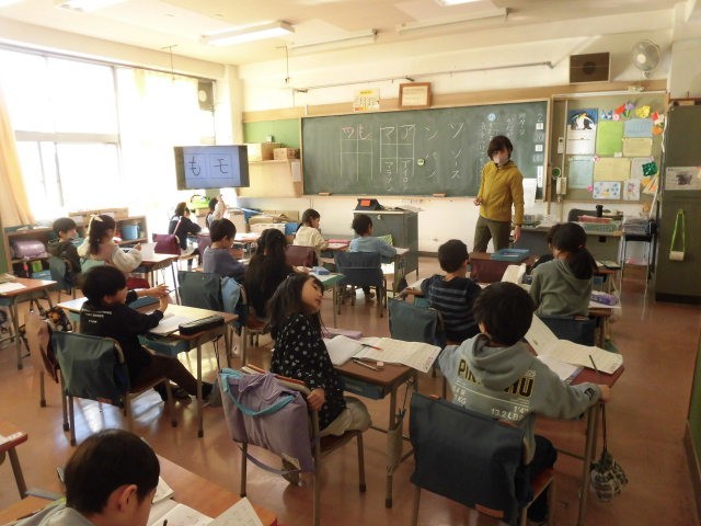 1年生の授業は国語です。片仮名の学習です。