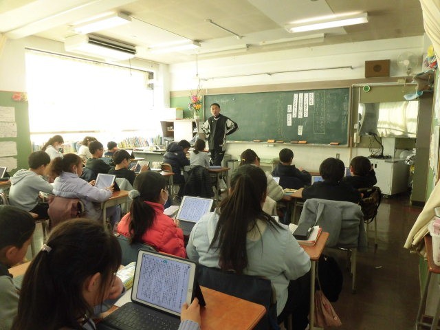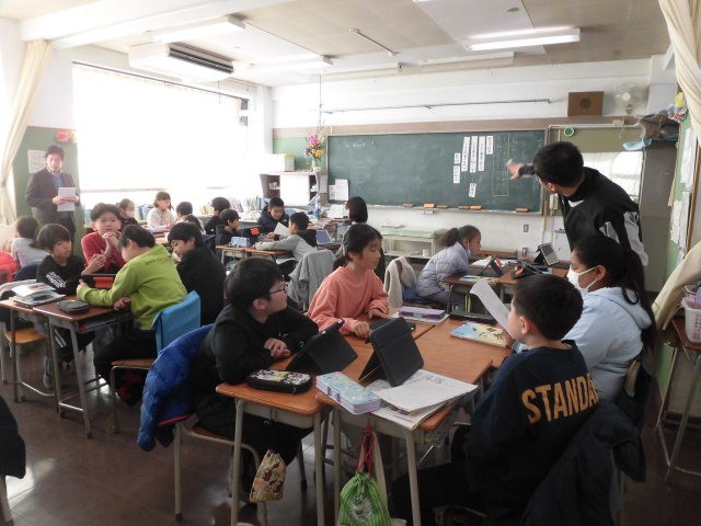 説明文の学習です。各自で作った説明文の紹介文を見合っています。グループで交流した後は、友達の紹介文のよいところをみんなで確認しました。