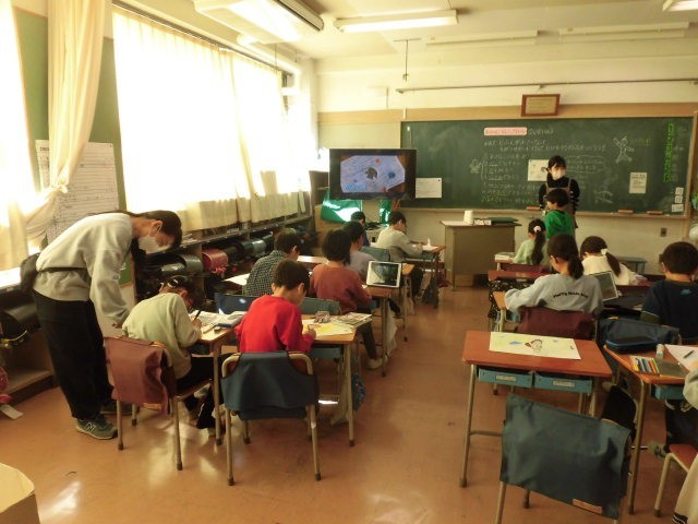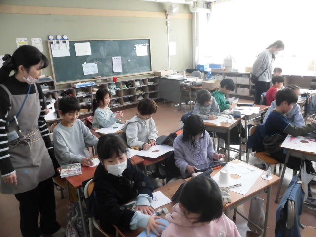 2年生の授業は図工です。自分自身が小さくなって絵の世界に入っていきます。