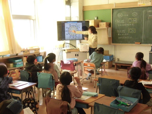 長い針の時計の読み方を学習しています。5分10ふん15分などの読み方の次は、細かい目盛りの読み方です。こうなると急に難しくなります。