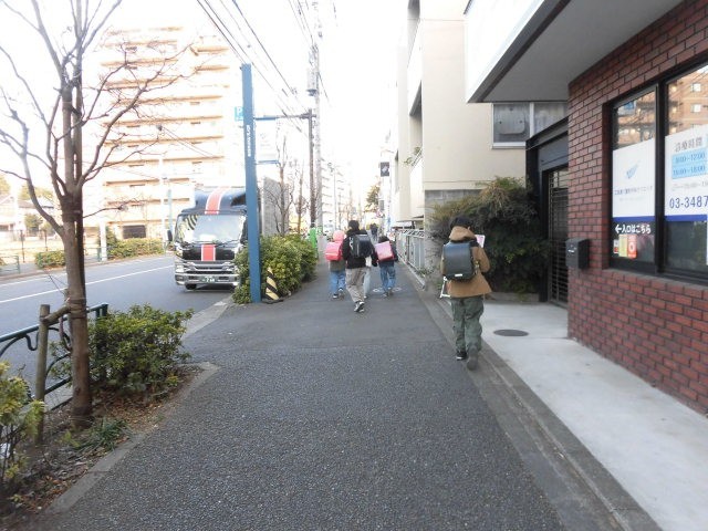 子どもたちが登校する時刻です。今日は先週と比べとてもあたたかく感じます。