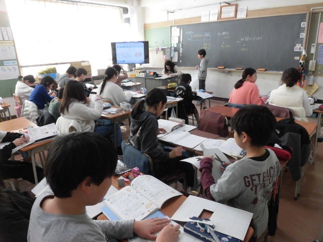 出来上がった人が見せてくれました。きれいに頂点がそろっています。しっかりと展開図を書くことができている子どもたちです。