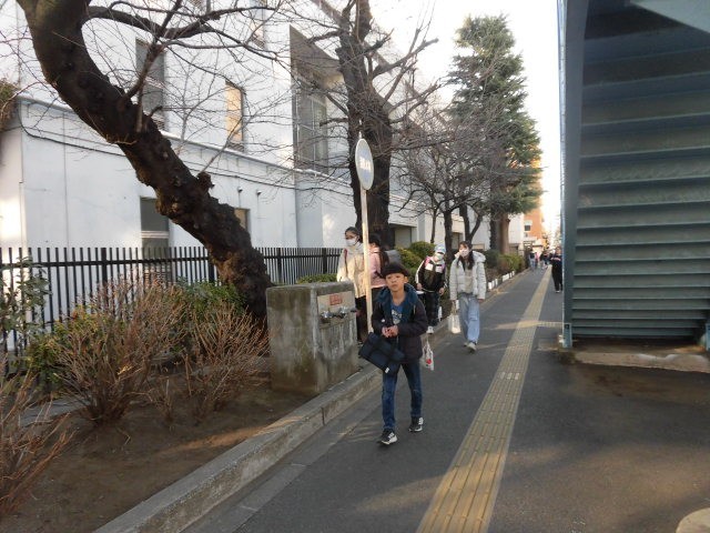 子どもたちの登校の時刻です。あたたかくなってきて、寒そうにしている人が少なくなりました。