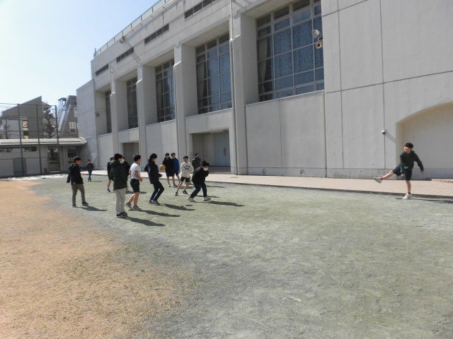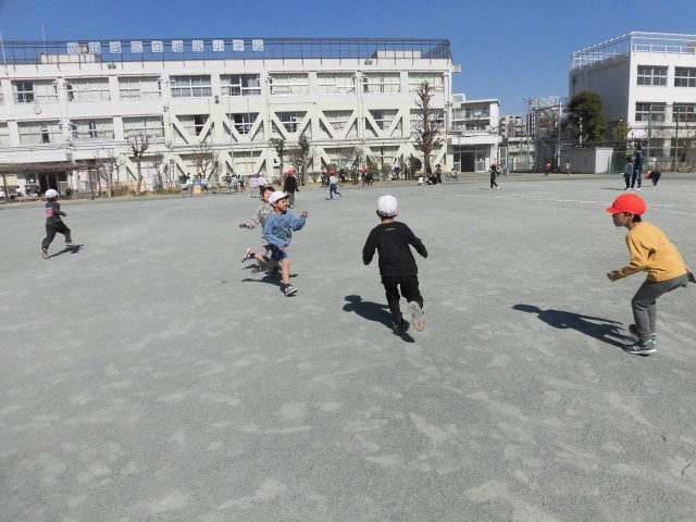 子どもたちは、ボール遊び、おにごっこ、ジャングルジム、一輪車、鉄棒などで遊んでいます。