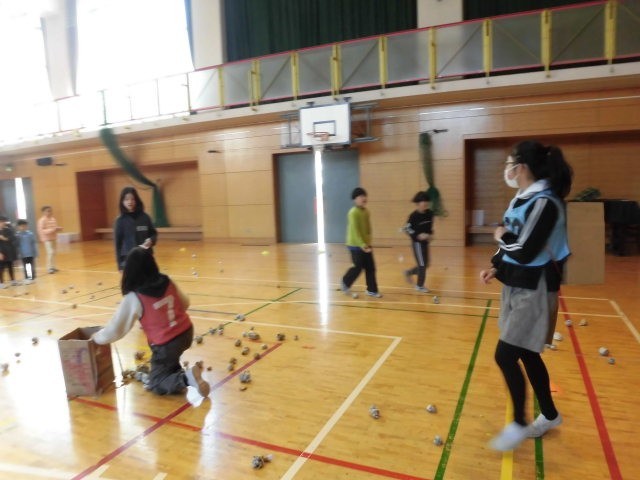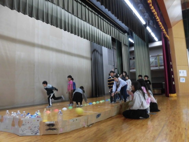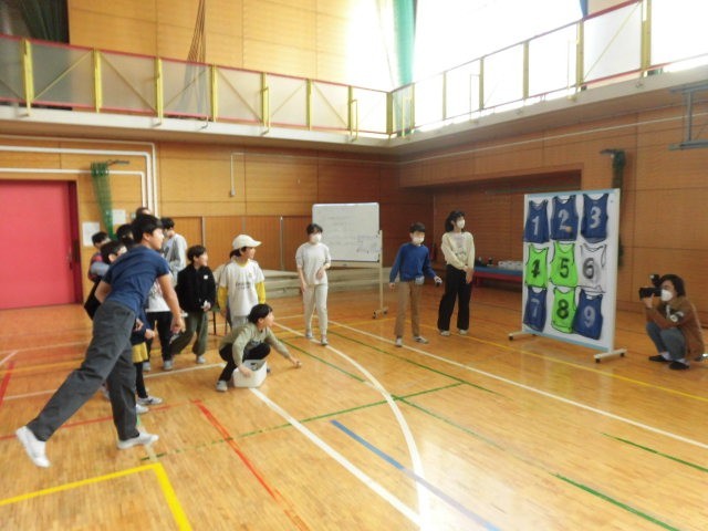 この写真は、「ストラックアウト」「玉入れ」「ボーリング」です。