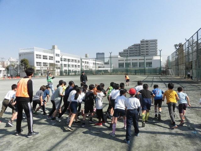 三宿小学校、多聞小学校、池尻小学校の子どもたちが集まり、池尻こどもマラソンが行われました。