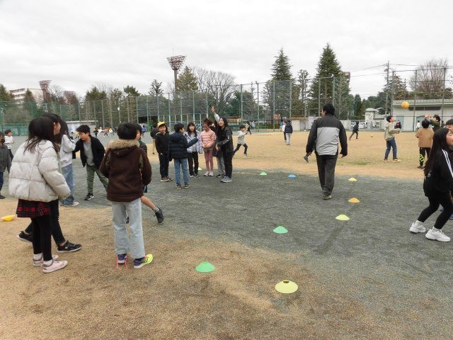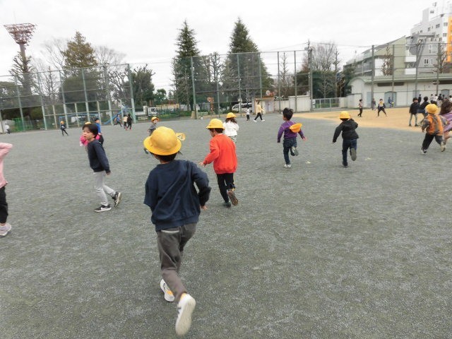おにごっこでおにが決まった1年生が、一斉に駆け出しました。ものすごい勢いです。