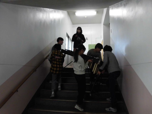 1階の体育館から3階の音楽室へ移動です。重たい楽器もあり、とても大変です。しかし、5年生みんなで力を合わせ、しっかりと仕事をしてくれています。自分たちが使ったものではないのに、気持ちよく運んでくれるその気持ち、嬉しいです。